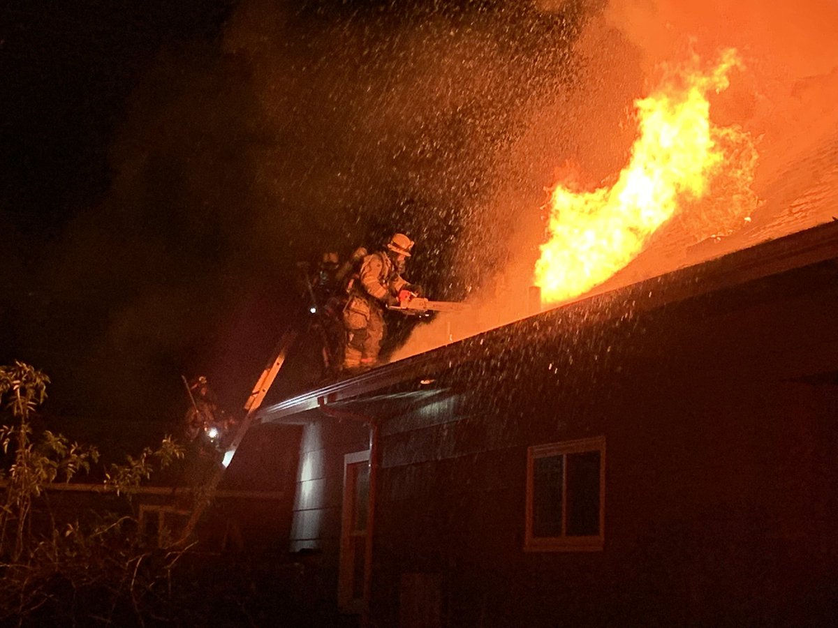 Pictured here, the crew from Ladder Company One performs vertical ventilation. This type of ventilation is done in coordination with the simultaneous fire attack. Releasing smoke and heat from the structure creates a safer environment for interior crews to fight the fire