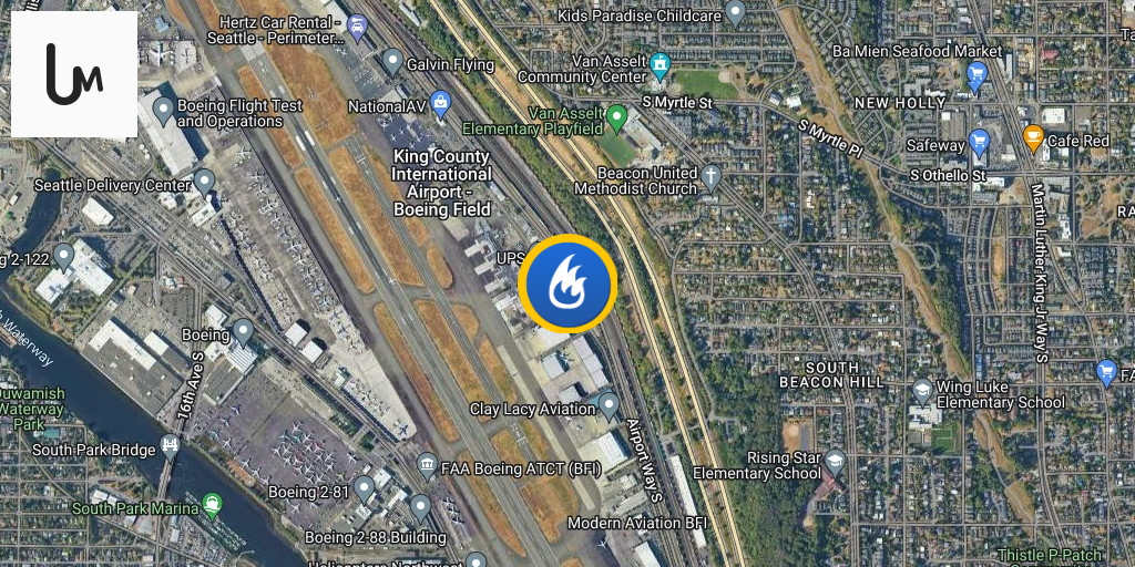 Airport Way S. and Portland St.: response has been reduced to a few units. All occupants of the vehicle exited on their own prior to SFD arrival. Expect traffic delays as firefighters continue to mitigate the incident