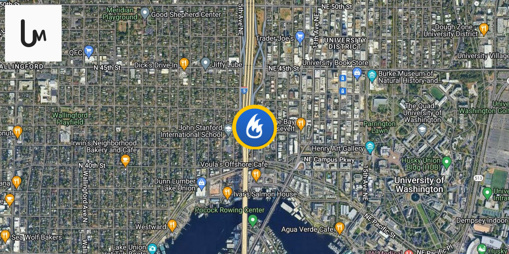 9200 block of Lake City Way NE. : Fire is extinguished. No reported injuries