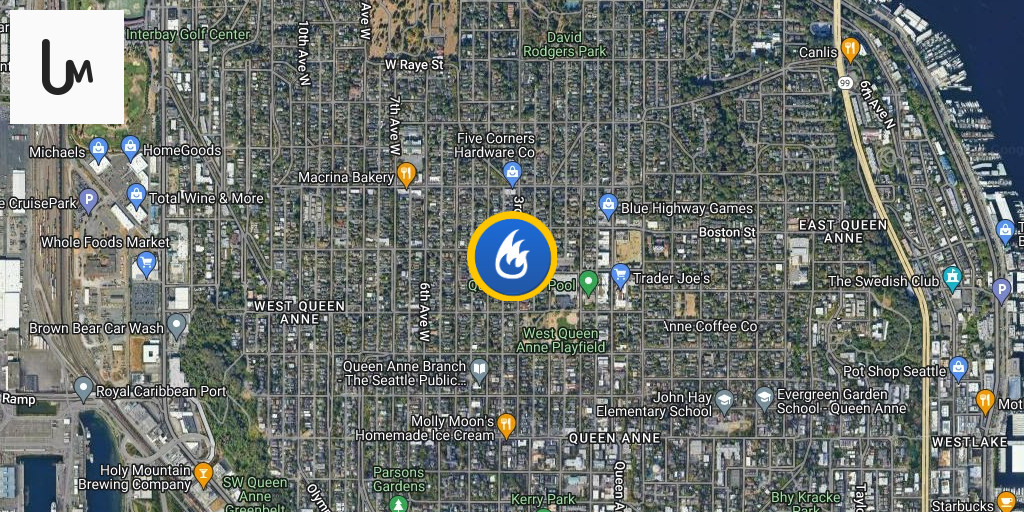 2100 block of Queen Anne Ave. N: Fire extinguished. Primary search of the vehicle is all clear. Mobile Ventilation Unit dispatched to help remove smoke from the building and garage